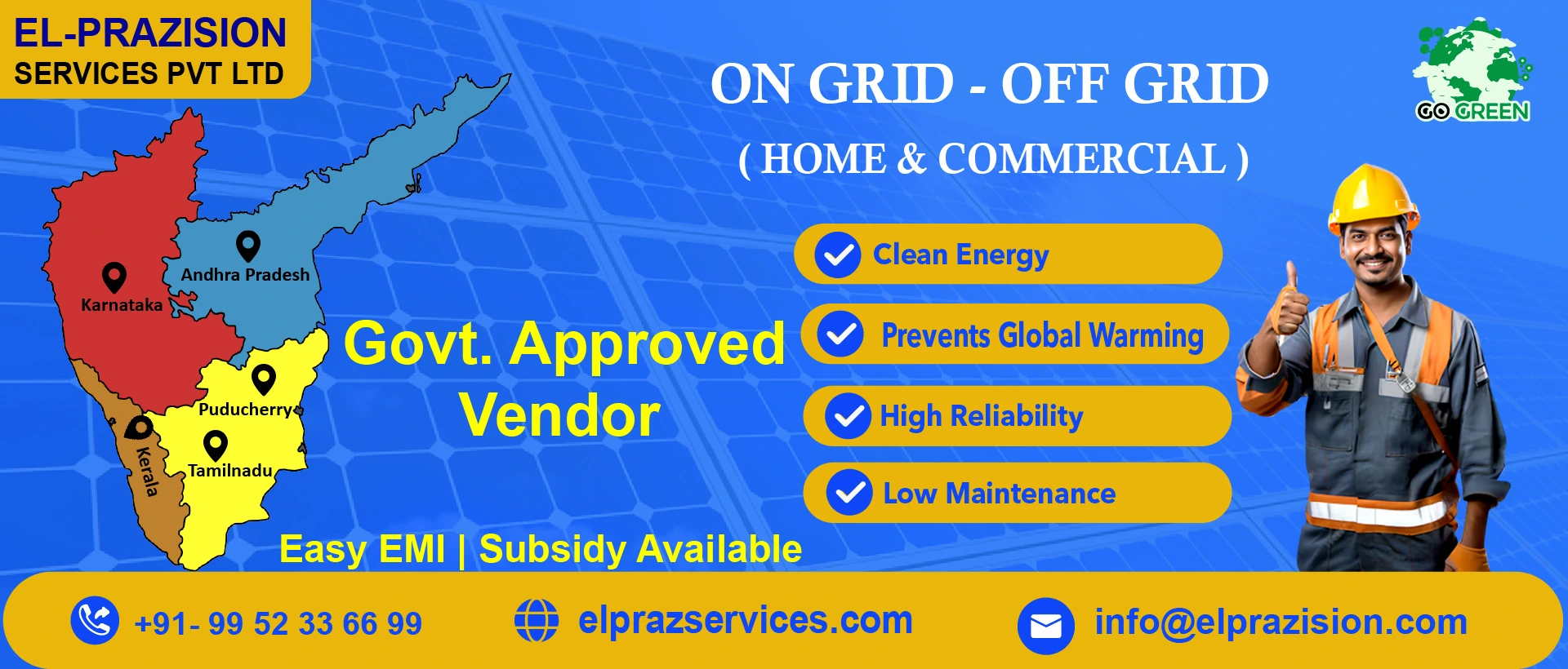 El‑Prazision is a full‑service rooftop solar installer in Tamilnadu, offering residential and commercial systems, subsidy facilitation, and post‑installation support with strong local presence and positive customer feedback.